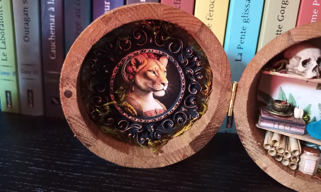 Petite boîte en bois, peut se refermer.